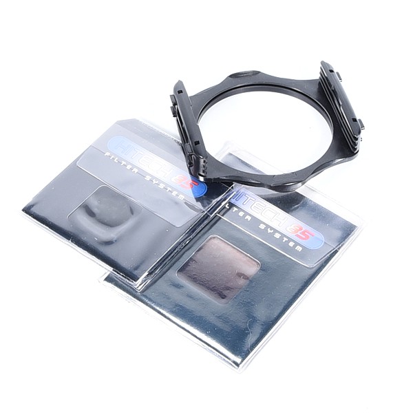 W zestawie: filtr pełny szary Hitech ND1.2 (84×84), filtr połówkowy szary Hitech ND 0.9 Grad Soft (84×110) + holder + adapter (do wyboru)