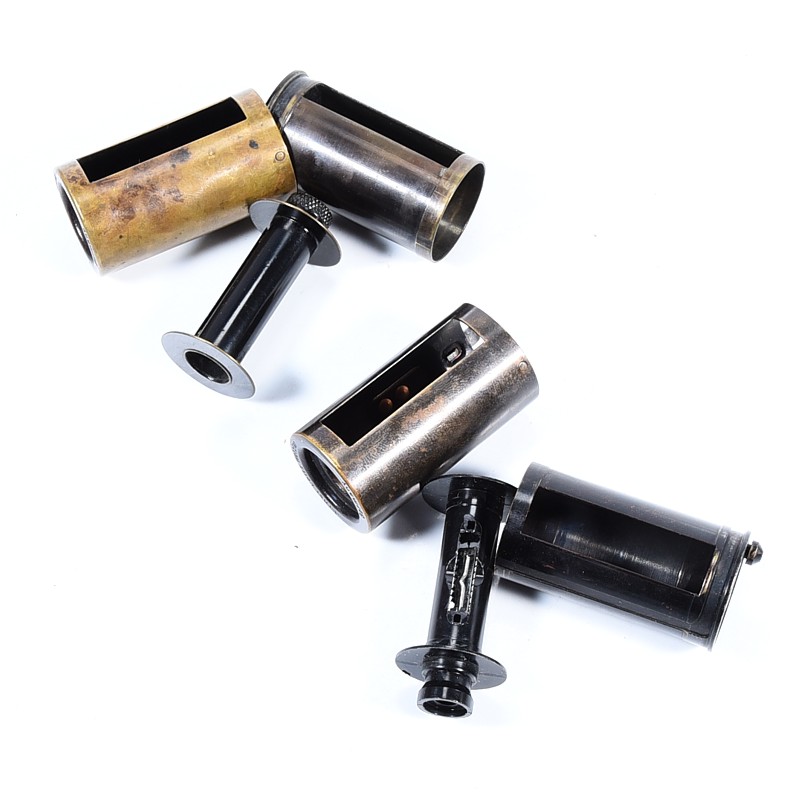 LEICA RELOADABLE CASSETTES BULK FILM CANISTERS – Wymienna kaseta na filmy do aparatów Leica firmy Ernst Leitz GmbH Wetzlar. Korpus z mosiądzu.