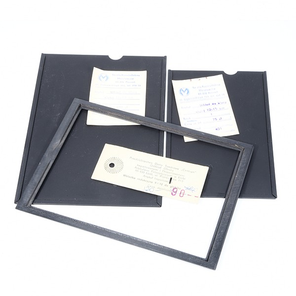 Akcesoria do VEB Pentacon Globica: wkład do błony ciętej 10×15 oraz 13×18 + wkładka redukcyjna 9×12 / ramka
