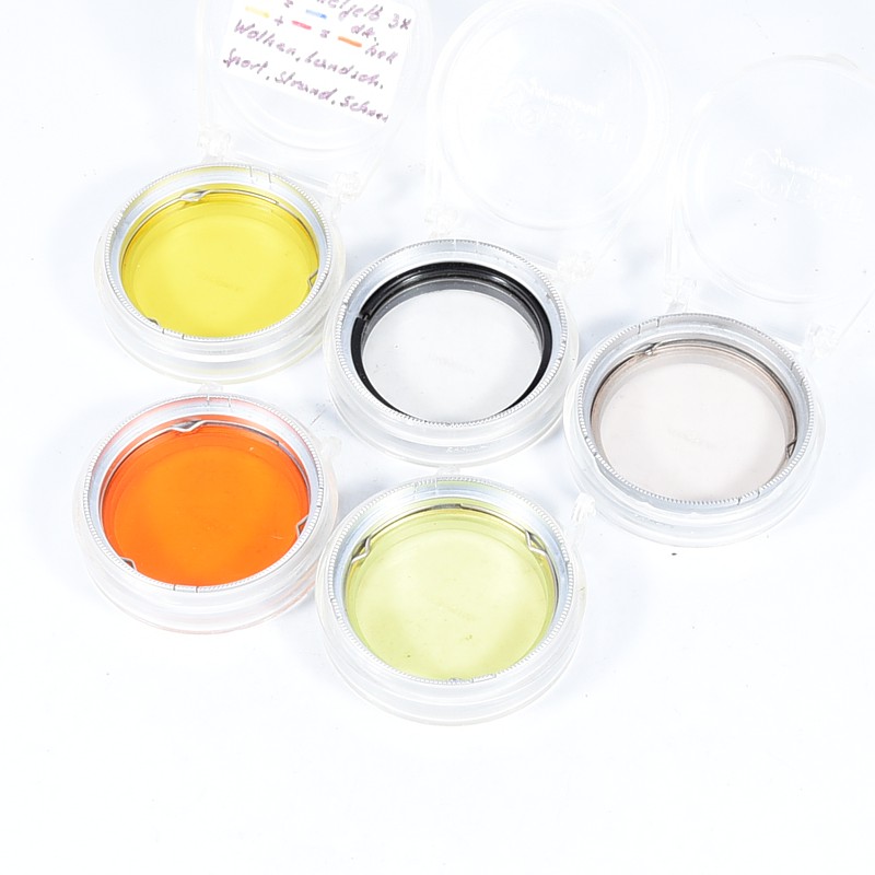 W zestawie: pięć filtrów + pudełeczka (troszkę popękane – dwa bez pokrywek)