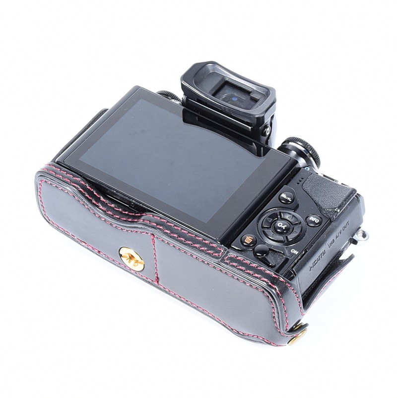 W zestawie: aparat, dekielek na korpus, akumulator, ładowarka USB, pasek, półfuterał