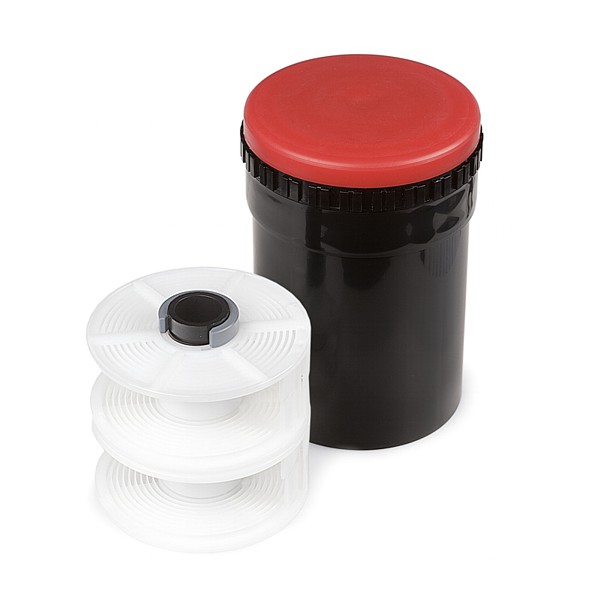 Z dwiema regulowanymi, samonawijającymi się szpulami. Do filmów o rozmiarach 135 (35 mm), 126, 127, 120 lub 220 (rolka). Zbiornik i szpule wykonane z nietłukącego tworzywa sztucznego.