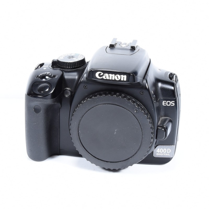 Canon EOS 400D posiada matrycę o rozdzielczości 10 megapikseli, monitor o przekątnej 2,5 cala pełniący jednocześnie funkcję wyświetlacza funkcyjnego (nie ma wyświetlacza pokazującego parametry ustawienia aparatu), oraz system oczyszczania sensora. Monitor 2,5 calowy wyświetla wszystkie informacje dotyczące parametrów fotografowania, które w poprzednim modelu prezentowane były na monitorze dodatkowym, w związku z czym Canon zrezygnował z wyświetlacza monochromatycznego. EOS 400D posiada przydatny czujnik przyłożenia oka do wizjera, podobny do stosowanych w aparatach marki Konica Minolta, a teraz Sony. Podczas obserwacji kadru w wizjerze wyłącza on monitor, dzięki czemu informacje, które przedstawiono na jasnoszarym tle, nie przeszkadzają w pracy.
