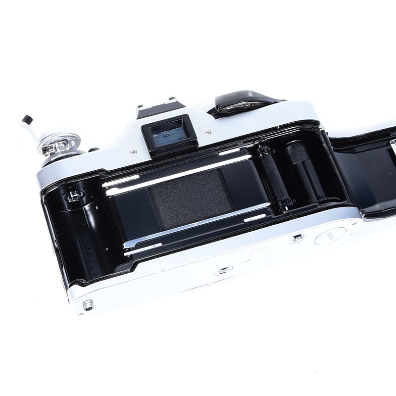 Używany w bardzo dobrym stanie, niewielkie ślady użytkowania na korpusie – drobne otarcia i ryski, matówka bez skaz – kilka pyłków, dobra ale nierównomierna praca pierścienia ostrości, wewnątrz kilka pyłków, optyka bez rys, aparat jest sprawny