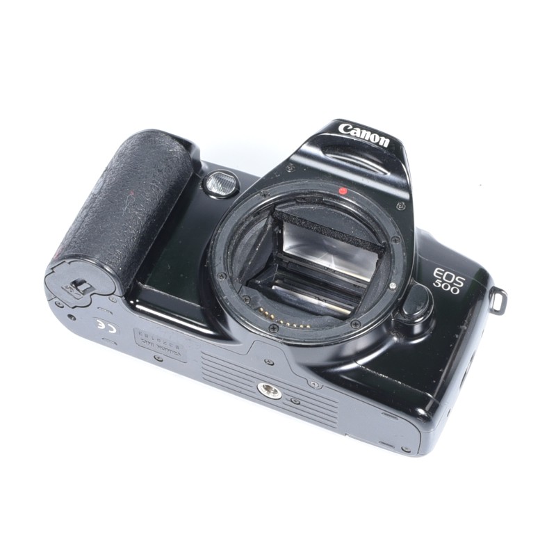 Nowa wersja EOS-a 1000FN – tak jesienią 1993 roku fachowcy skomentowali pojawienie się nowego modelu Canona, ale szybko okazało się, że pokrewieństwo tych aparatów wcale nie jest tak bliskie. Stała tendencja zmniejszania masy Canonów w tym modelu uwidoczniła się najsilniej. Canon EOS 500 ma śmiesznie małą, jak na lustrzankę masę – korpus waży zaledwie 350 g. Złożyło się na to wiele czynników m.in. istotne zmniejszenie wymiarów korpusu, zastąpienie (tam gdzie to tylko było możliwe) metali tworzywami sztucznymi, uproszczenie systemu przewijania filmu.