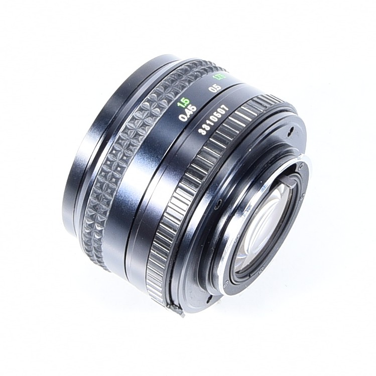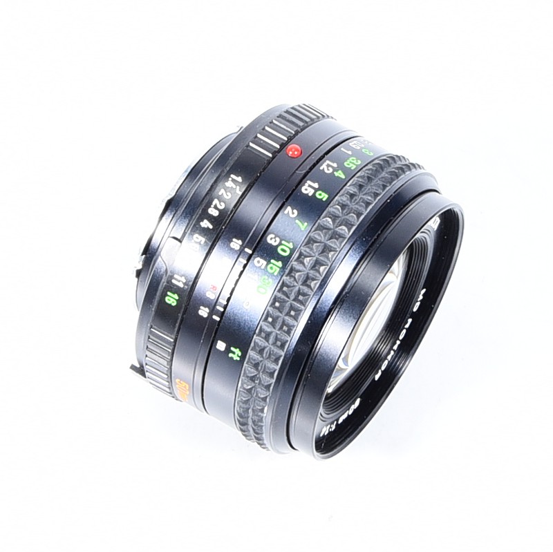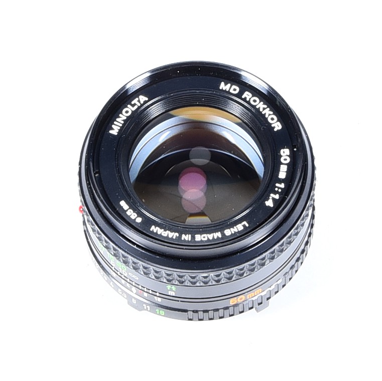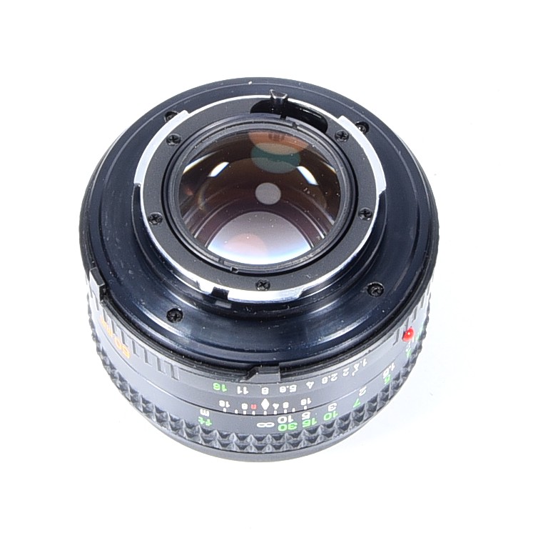 Mocowanie obiektywu: Metalowy bagnet, zgodny ze standardem Minolta SLR, kompatybilny z obiektywami serii MD i MC, niekompatybilny z optyką z automatycznym ustawianiem ostrości (Minolta Dynax/Maxxum)