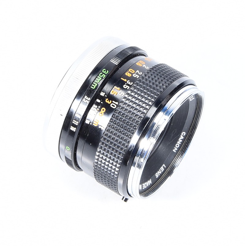 Canon FD 35mm f/3.5 – jasny, doskonały obiektyw szerokokątny, lekki i poręczny. Nadaje się zarówno do fotografowania, jak i do filmowania. Doskonały do adaptacji do aparatów 'bezlusterkowych’ (typu: Canon EOS M, Sony NEX, Panasonic/Olympus Micro 4/3, Fuji X, Nikon 1, Pentax Q, Samsung NX, itp), także do kamer oraz lustrzanek cyfrowych (po zastosowaniu odpowiedniej przejściówki).