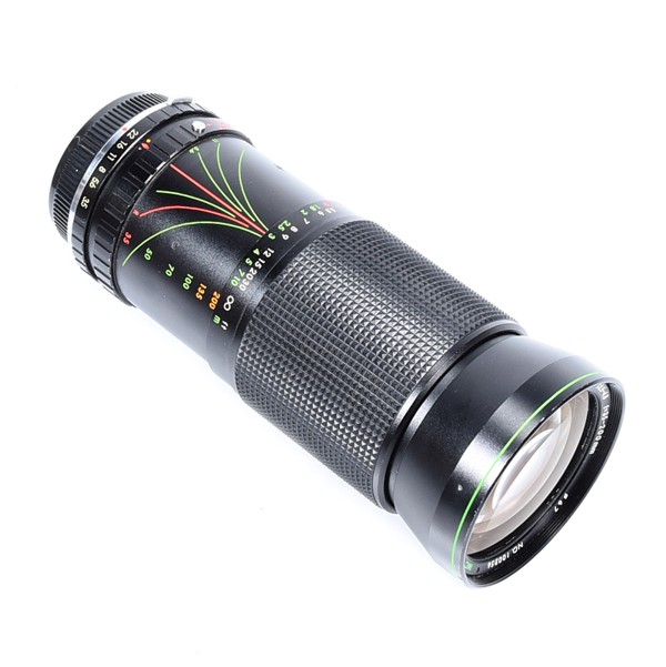 MC Hanimex AutoMatic Zoom 35-200mm f/3.5-4.8 Macro – obiektyw typu zoom, zapewnia szeroki zakres ogniskowej, od szerokiego kąta 35mm do teleobiektywu 200mm.