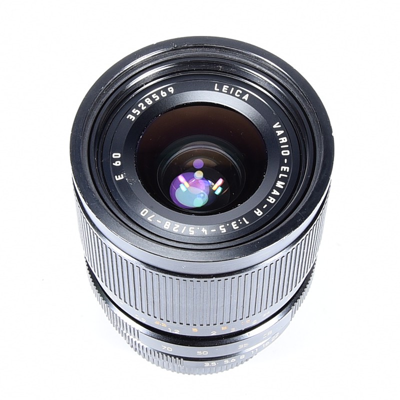 Leica VARIO-ELMAR-R 28-70mm f/3.5-4.5 model 11265 – małe rozmiary w połączeniu z legendarną optyką Leici oraz szerokim zakresem ogniskowych sprawiają, że jest bardzo wygodny w użytkowaniu. Przeznaczony do aparatów SLR 35mm z mocowaniem Leica R 3-cam, pasuje do aparatów: Leicaflex, Leicaflex SL / SL2 oraz Leica R (R3 do R9), wyprodukowany w 1990 roku.