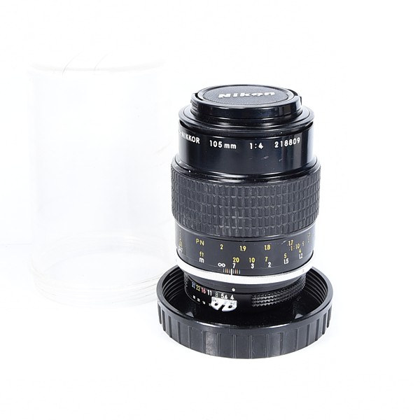 Nikon Micro-Nikkor 105mm f/4 AI – wysokiej klasy obiektyw makro, skala odwzorowania w makro 1:2 – z pierścieniem PN-11 1:1