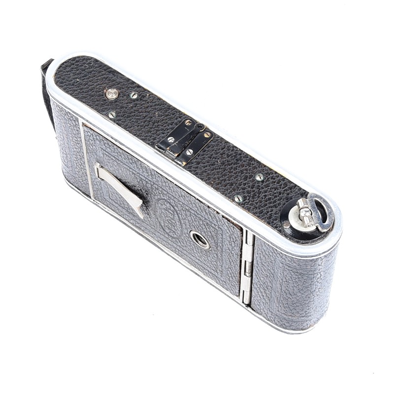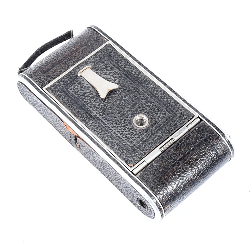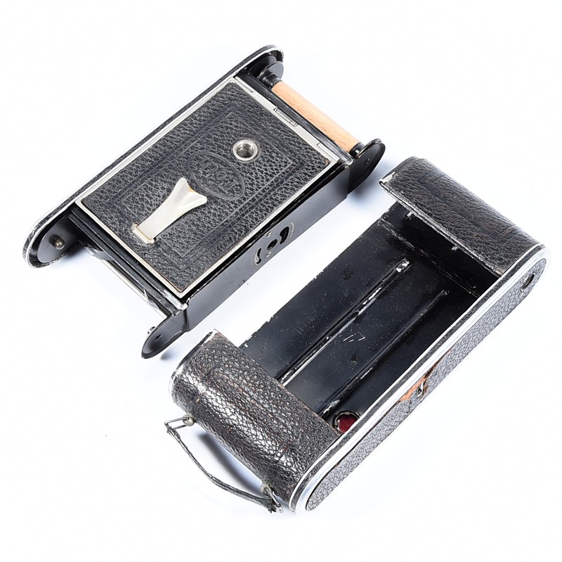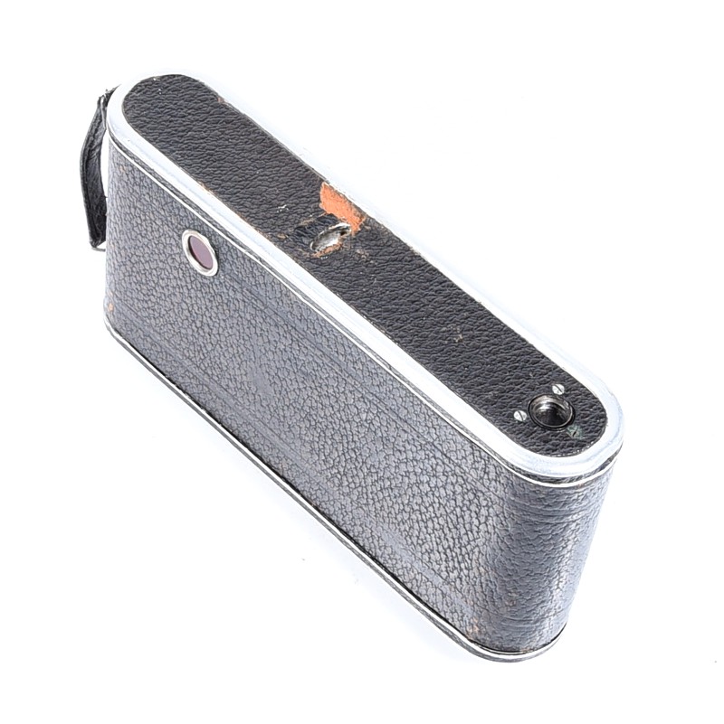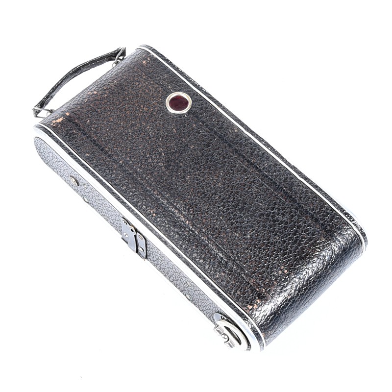 Aparat używany w niezłym stanie, widoczne ślady użytkowania, migawka sprawna ale wymaga regulacji, mechanizmy otwierania aparatu sprawne – aparat sprzedajemy jako kolekcjonerski – wymaga regulacji / serwisu