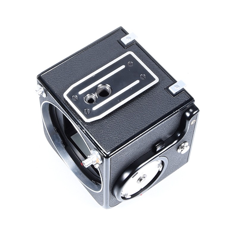 W zestawie: aparat, obiektyw + przedni dekielek + osłona p/s, kominek, matówka standard, kaseta A12, oryginalny pasek, instrukcja JP (ksero EN)