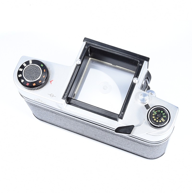Aparat używany w ładnym stanie, niewielkie ślady użytkowania na korpusie, trzyma czasy, w obiektywie zaoliwione listki przysłony, optyka czysta bez rys – aparat sprzedajemy jako kolekcjonerski, może wymagać regulacji.