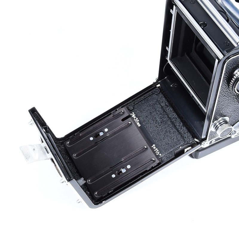 Film: 120 na 12 lub 24 ekspozycje 6×6 i adapter 35mm Rolleikin 2.